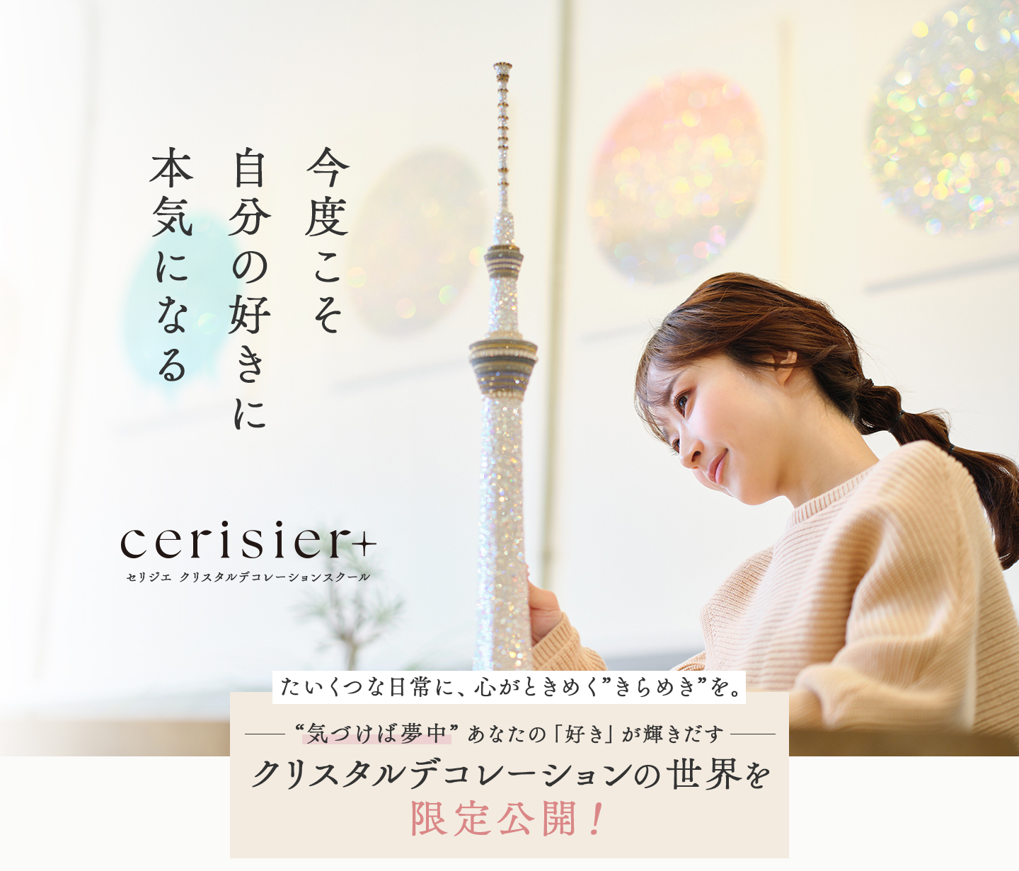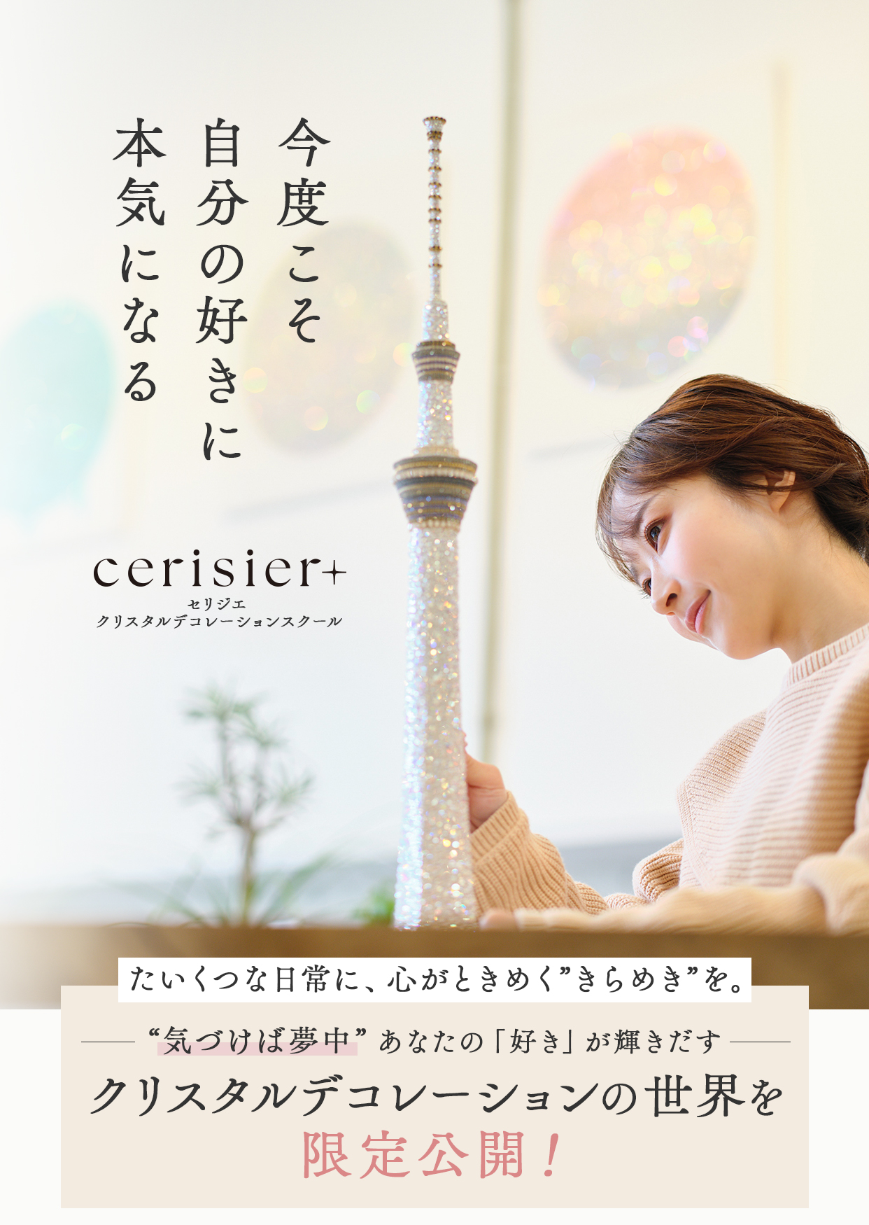 私たち Cerisier(セリジエ) は、スクールを通じてクリスタルデコレーションの魅力と価値を広く伝え、国内で発展したこのアートワークを世界へ発信するとともに、業界全体の地位向上を目指しています。